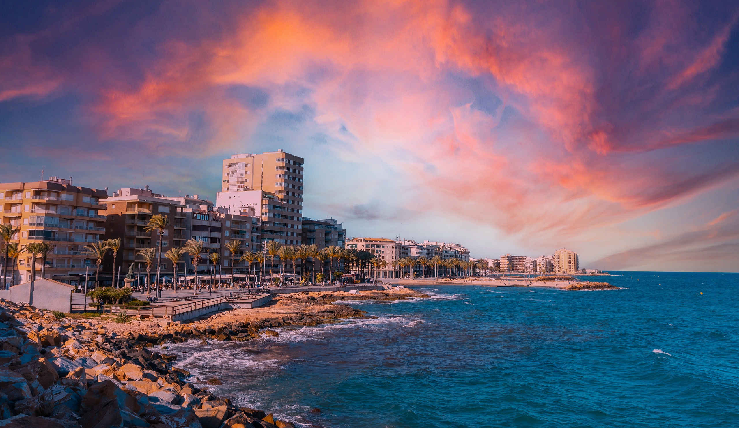 Torrevieja to nadmorski kurort na południu Hiszpanii. Ma dużą linię brzegową z wieloma różnymi plażami, którymi można się cieszyć. Obszar ten znany jest również z rezerwatu przyrody La Laguna de la Mata i specjalnego słonego jeziora Salinas. To duże jezioro ma różowy kolor i bardzo wysokie stężenie soli. Wszędzie znajdziesz duże kryształki soli i możesz pływać po jeziorze bez ranienia głowy. W rezerwacie przyrody znajdziesz także populację flamingów. Żywią się małżami żyjącymi na brzegach słonego jeziora, a flamingi zapewniają im różowe pióra.